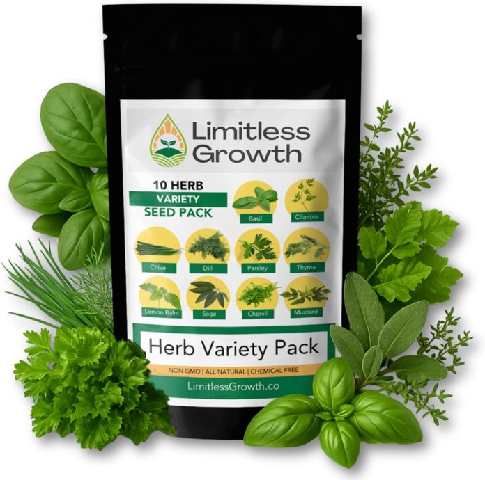 10 Herb Pack | Seeds for Planting: Culinary Herbs Assortment | Indoor & Out of doors Backyard Selection | Chervil, Chive, Cilantro, Lemon Balm, Mustard, Sage, Thyme, Basil, Parsley, Dill | Limitless Progress