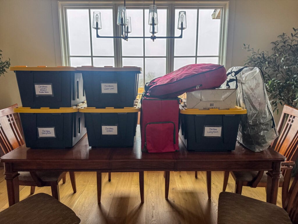 I leveled up my storage recreation this yr with stackable bins, clearly labeled by room, however for tree ornaments you aren’t going to get higher than this storage container.