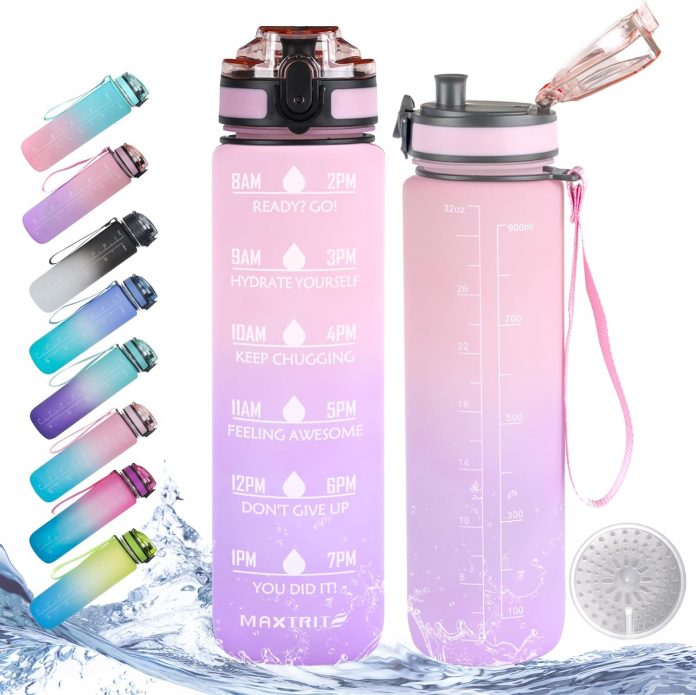 32oz Each day Water Bottle with Motivational Time Marker, Reusable Plastic BPA Free Water Jug, 1 Liter Quick-Circulation Consuming Bottle for Faculty,Work,Journey,Gymnasium and Out of doors Sports activities(32oz/1000ml,Pink to Purple)