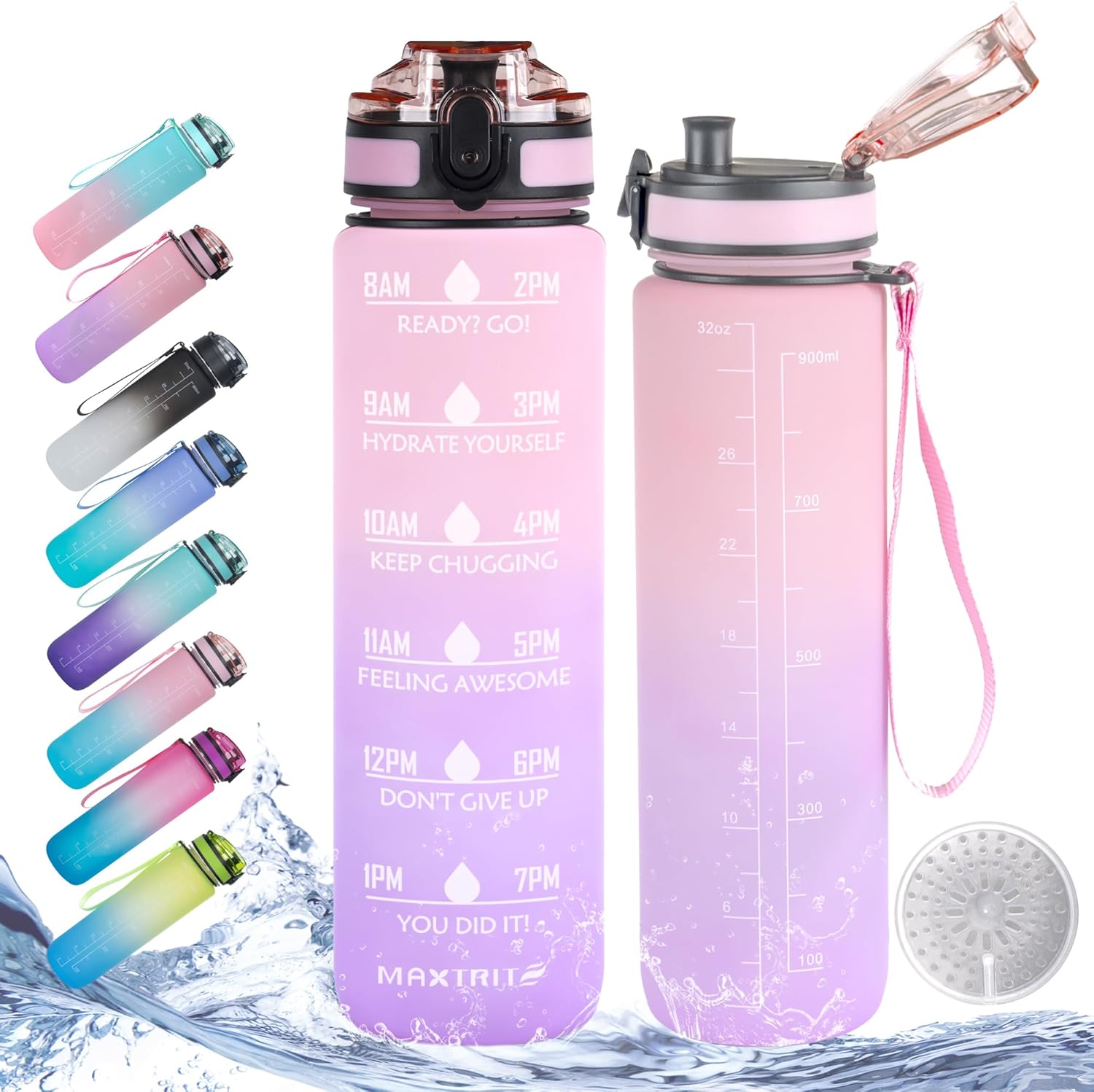 💧【Vogue Design】💧With every bottle’s fashionable design and gradient colours, you’ll be able to specific your persona with a coloration design that fits your distinctive character, model and aesthetic style. The frosted bottle makes it snug to carry and the strap makes it handy for on a regular basis carrying.
