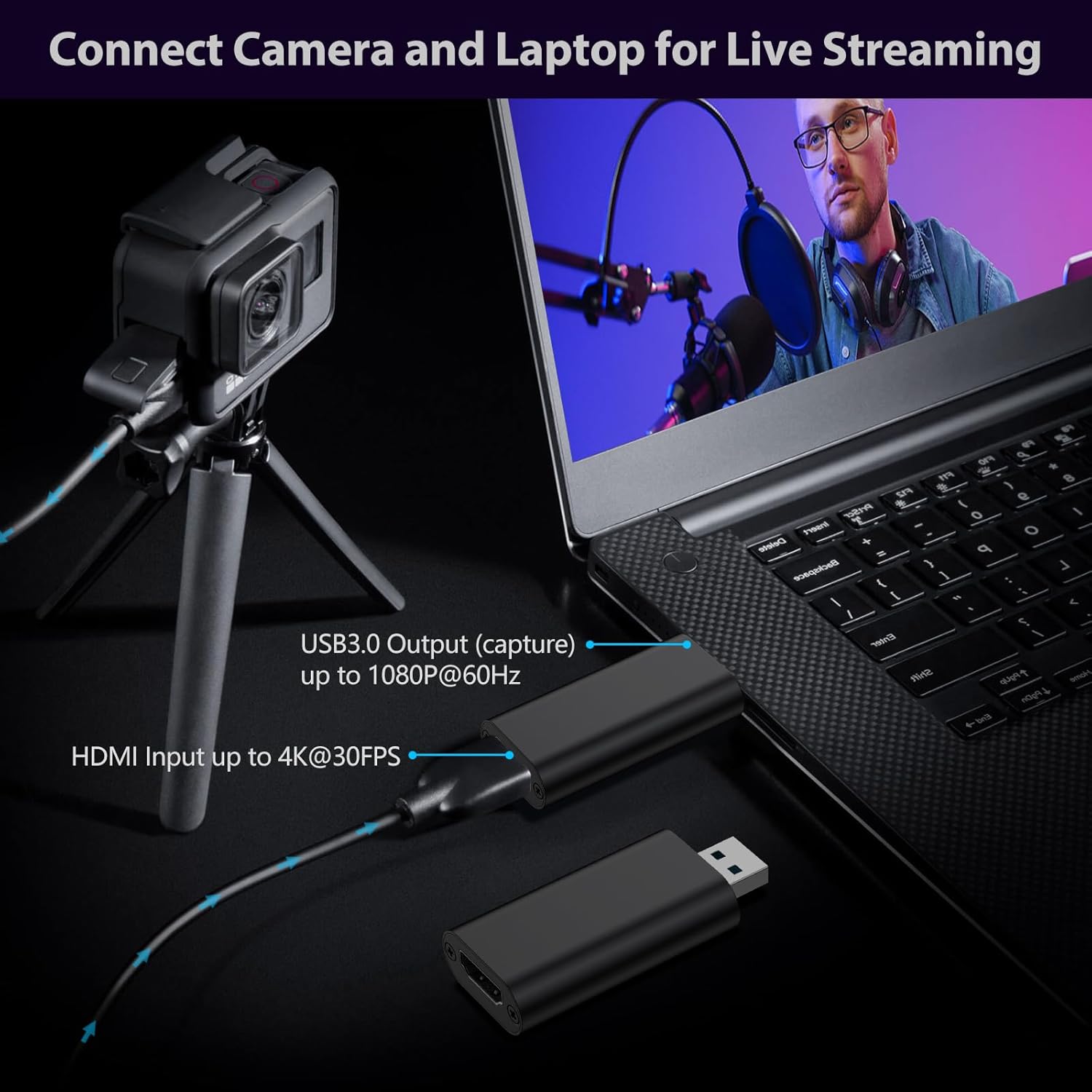 4K HDMI to USB 3.0 Video Seize Card, Cam Hyperlink 4K Card Sport Seize Card, Audio Display Document Seize Gadget for Streaming, Stay Broadcasting, Video Convention, Instructing, Gaming(Black) On OBS, Zoom and many others.