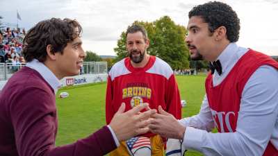 Marcello Hernandez, Adam Sandler and Bad Bunny in Happy Gilmore 2