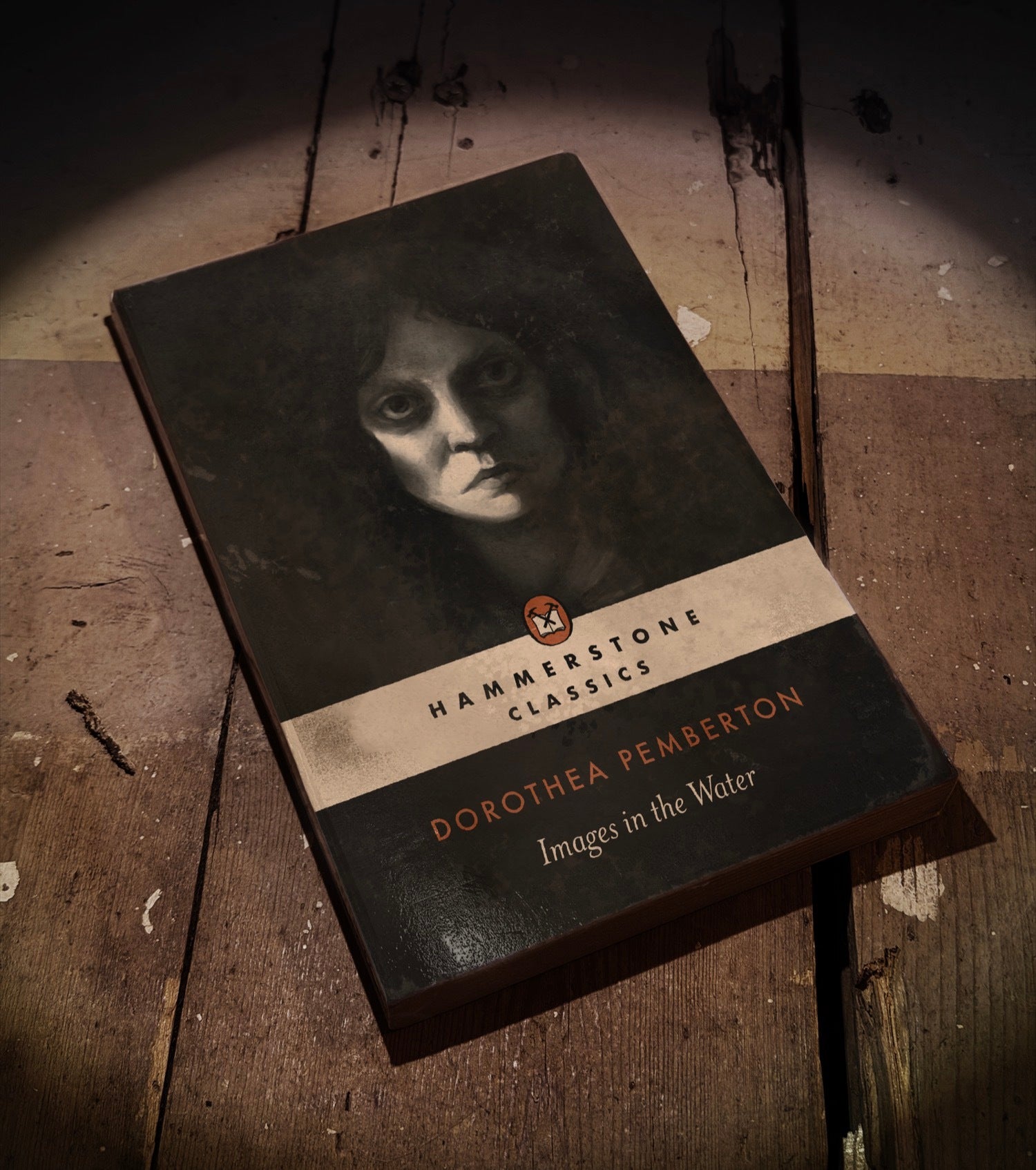 A possibly fake book called "Images In The Water"< written by Dorothea Pemberton and published by Hammerstone Classics, with a ghostly image of a lady's face on the cover.