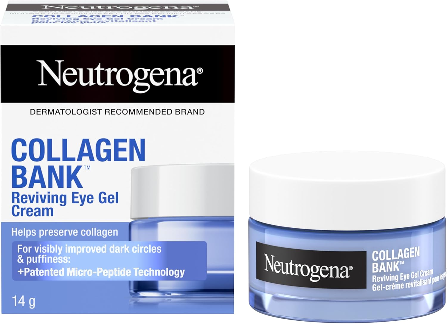 14-gram recyclable glass jar of Neutrogena Collagen Financial institution Reviving Eye Gel Cream to assist protect collagen whereas visibly bettering darkish circles & below eye puffiness. The attention moisturizer visibly energizes the look of drained eyes