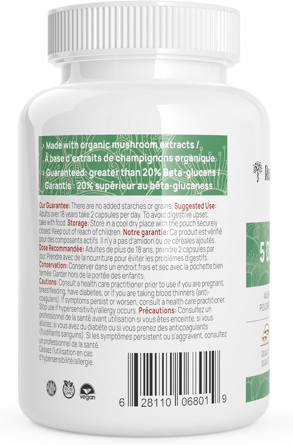 Measured Beta-Glucans: Verified by Third-party labs, our natural mushroom complement has 20% beta-glucans per capsule.