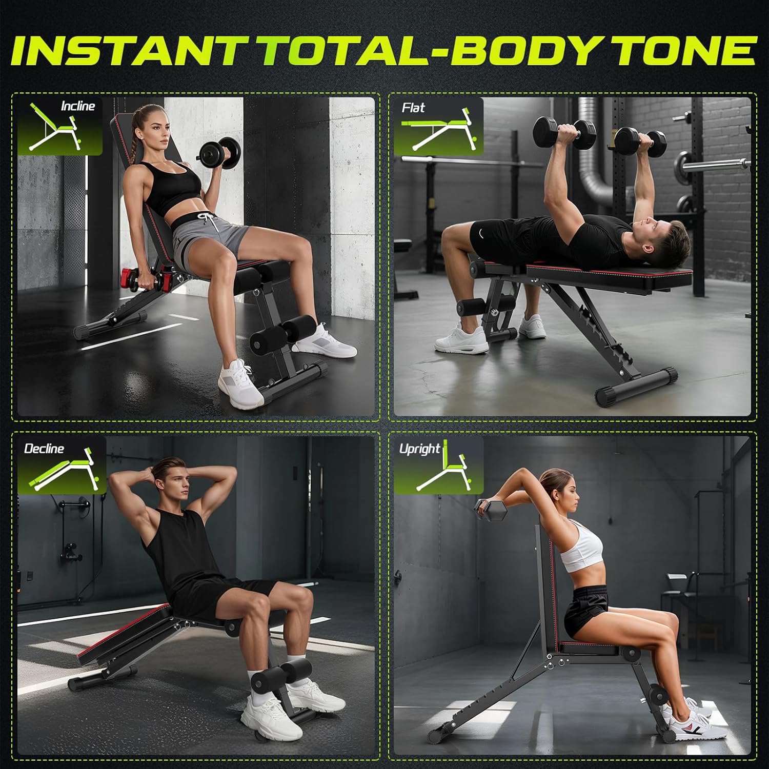 Your All-Angle Muscle Builder – This exercise bench morphs to assault each muscle—Crush each exercise with a -30° to 90° vary—torch abs on steep declines (-30°), construct chest peaks at 90° incline, or nail good kind on flat presses. Metal-frame stability meets pro-grade padding, whether or not you’re lifting heavy, doing drop units, or mixing in killer core circuits. Dial in your good angle, then chase that pump—no fitness center membership required.