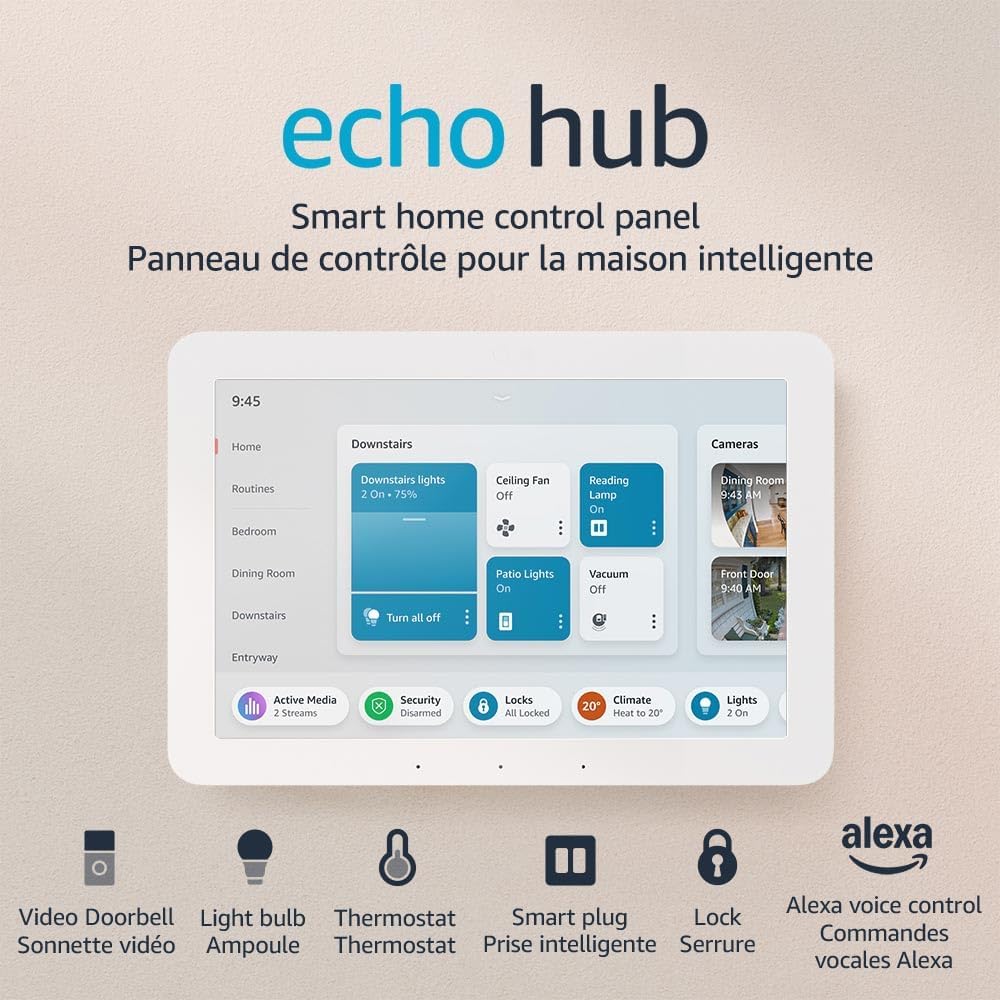 Meet Echo Hub — A simple-to-use Alexa-enabled management panel in your sensible house gadgets—simply ask Alexa or faucet the show to regulate lights, sensible plugs, digicam feeds, and extra