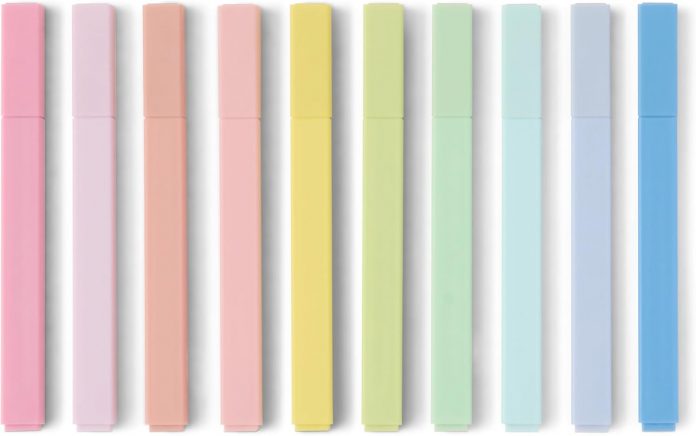 10-pack of highlighters in assorted pastel colours