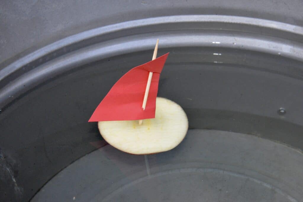 Fruity apple boat for a fall science activity