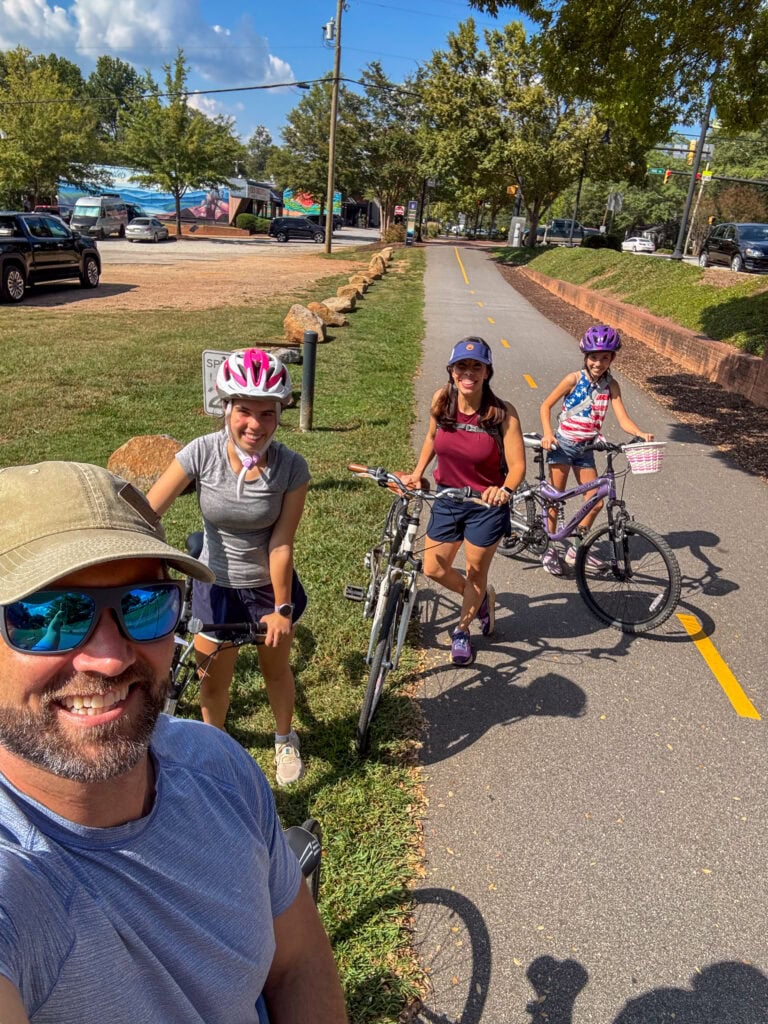 Friday afternoon we drove to our start line in TR, mounted our bikes, and began our journey into city. We rode by cute houses, the well-known Swamp Rabbit Grocery, the Commons and Unity Park, and ended 9 miles down the path proper in downtown Greenville. Biking over the bridge at Reedy Creek Falls with my fam was a birthday dream come true! We sat outdoors at Camp and had a pair small plates, bought ice cream from Jeni’s subsequent door, then loaded again up and biked the 9 miles again to the truck.