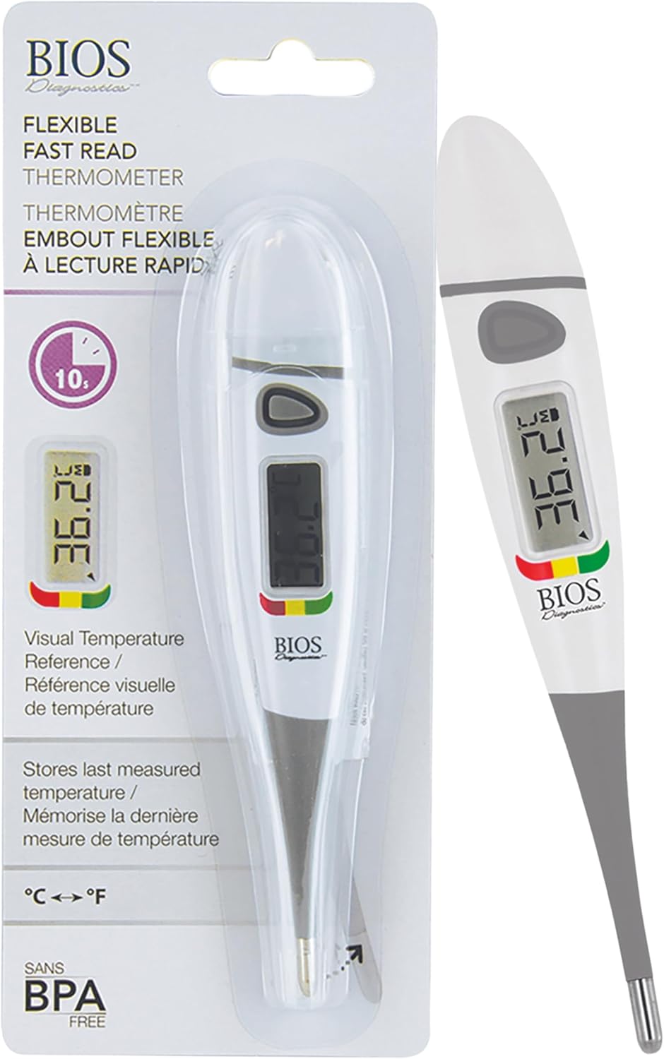 This quick and dependable 10 second versatile tip thermometer incorporates a visible temperature reference color bar system that helps customers perceive a temperature measurement.