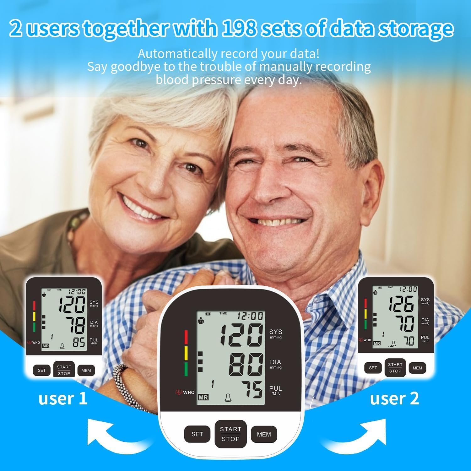 Sure! Designed for twin consumer use, with 189 impartial reminiscence units for every particular person (whole 378). All measurement information (BP, pulse, time/date) is auto-saved and categorised by consumer, no information mixing.