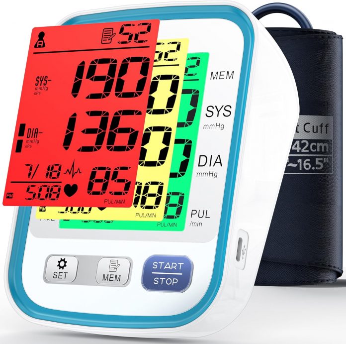 3 COLORS & LARGE LCD BACKLIT DISPLAY – Clear massive LCD display screen offer you a greater visible expertise and you may as well view the outcomes, together with systolic stress, diastolic stress, pulse price, date, time, and consumer. 3 shade supplies clear studying in darkish locations, Inexperienced, Yellow, Purple symbolize Regular, Mid, Excessive