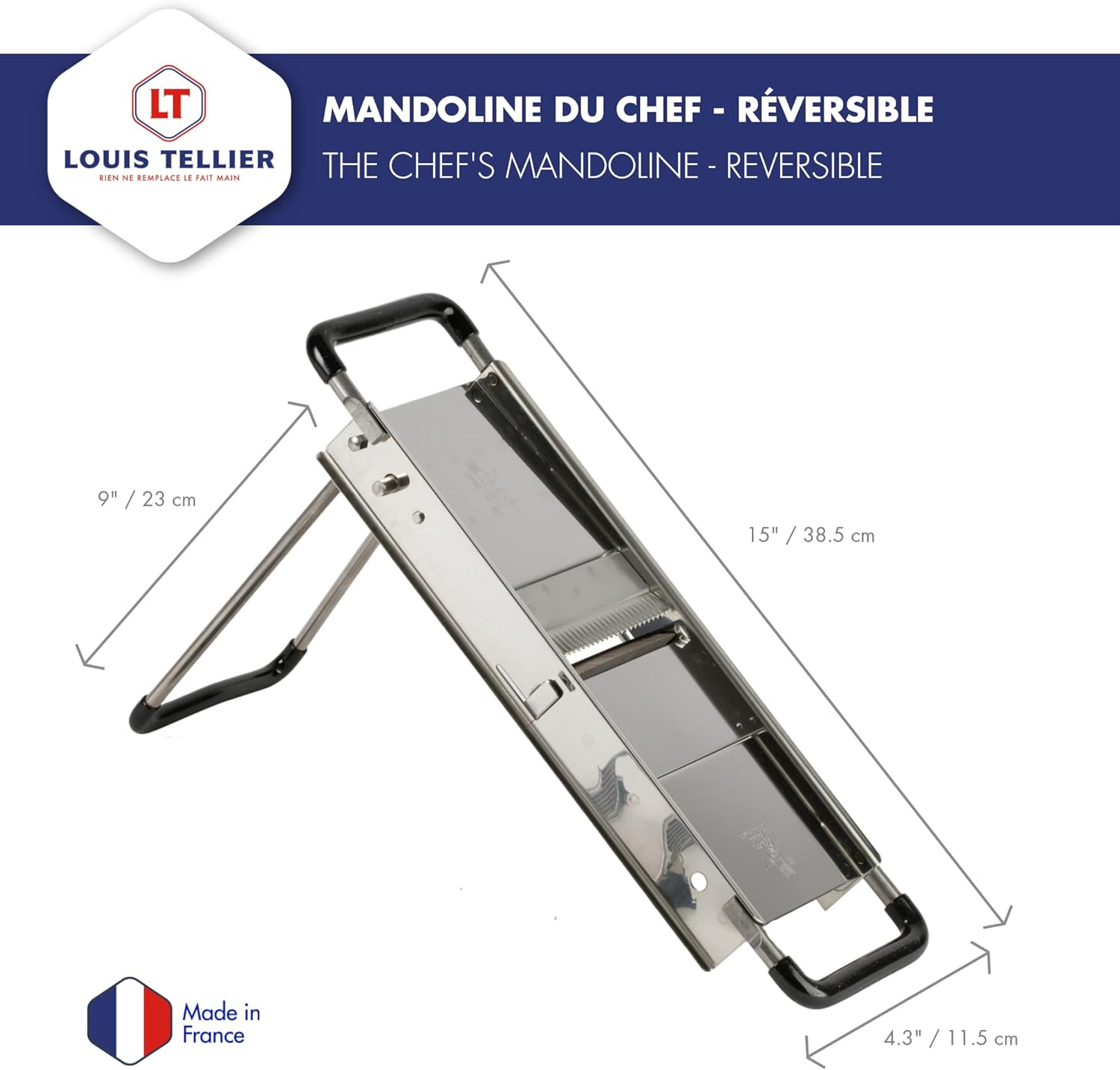 The brand new connoisseur Bron Mandoline is made in France from stable chrome steel. That includes 4 interchangable julienne blades plus a crinkle / waffle chopping blade and a flat blade for straight cuts. The julienne chopping blades are 5/64-inch, 5/32-inch, 9/32-inch and three/8-inch widths. The flat blade is adjustable utilizing a lever. This permits the consumer to make any lower from paper skinny to three/8-inch. This mandoline will simply produce good julienne, matchstick, french fry and crinkle cuts on any vegetable. Comes full with a detachable stand and plastic hand/finger guard. It is a really versatile machine for your entire vegetable prep wants.