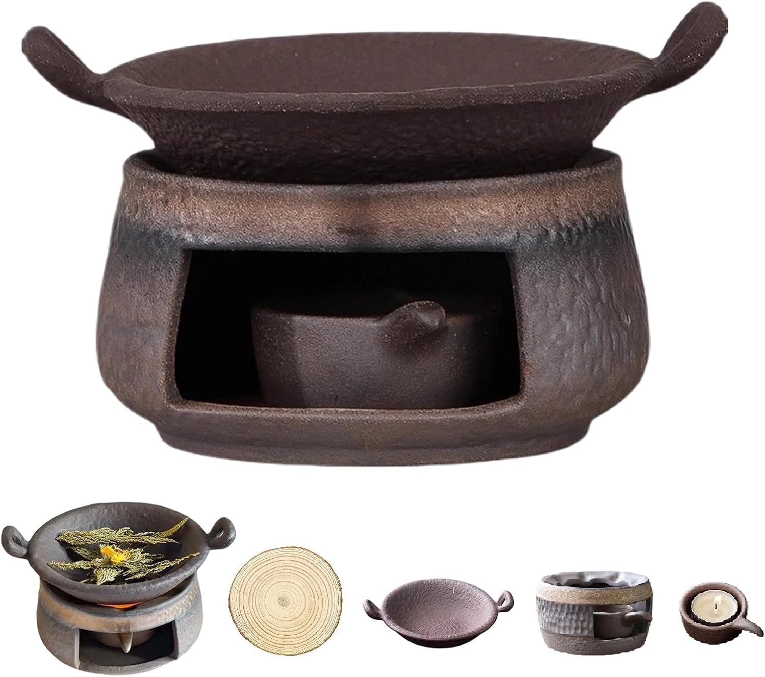 Ceramic Aromatherapy Range Important Oil Burner,Cedar and Zen Aromatherapy Burner, Tea Gentle Candle Holders Teapot Hotter, for House Workplace Meditation Rest (Baked Bowl,with Pad)