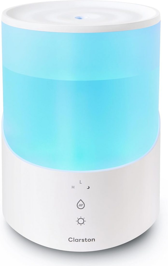 Clarston Humidifiers for Bed room Giant Room, 2.5L Cool Mist Humidifier with Important Oils Diffuser and Nightlight, High Fill Humidifiers for Dwelling, Auto Shut-off
