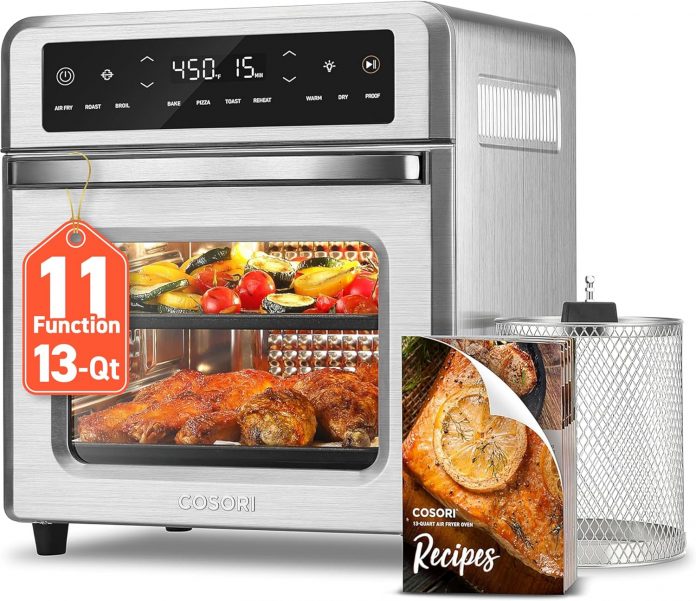 COSORI 11-in-1 Air Fryer Oven , 13Qt Small Footprint Airfryer combo with Rotisserie, Toast, Bake, Roast, Reheat Features and extra, Recipe E-book & 6 Equipment Included, Good for Small Contertop