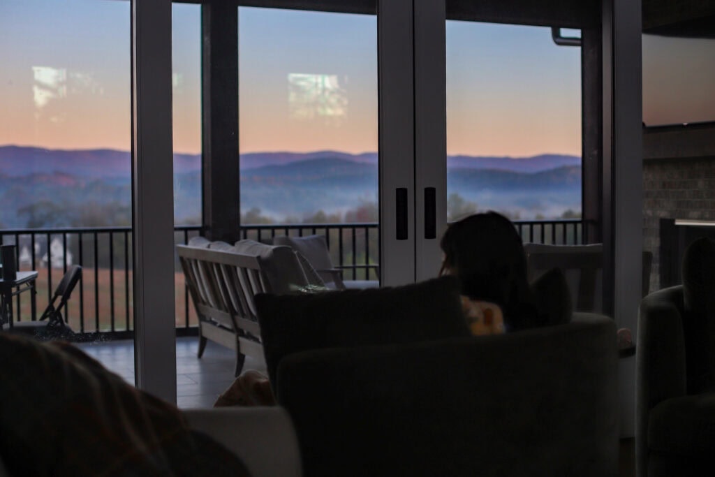 My alarm goes off at 6:05 so David and I stand up and shifting. I begin the espresso, activate the fireplace, and arrange in a front room chair with my pc to complete and publish my weblog submit about our dwelling gymnasium. Simply after 7:30 a sleepy H wanders down, smiles, grabs a blanket, and curls as much as stare out the window whereas I end up my pc work and she or he slowly wakes up for the day.