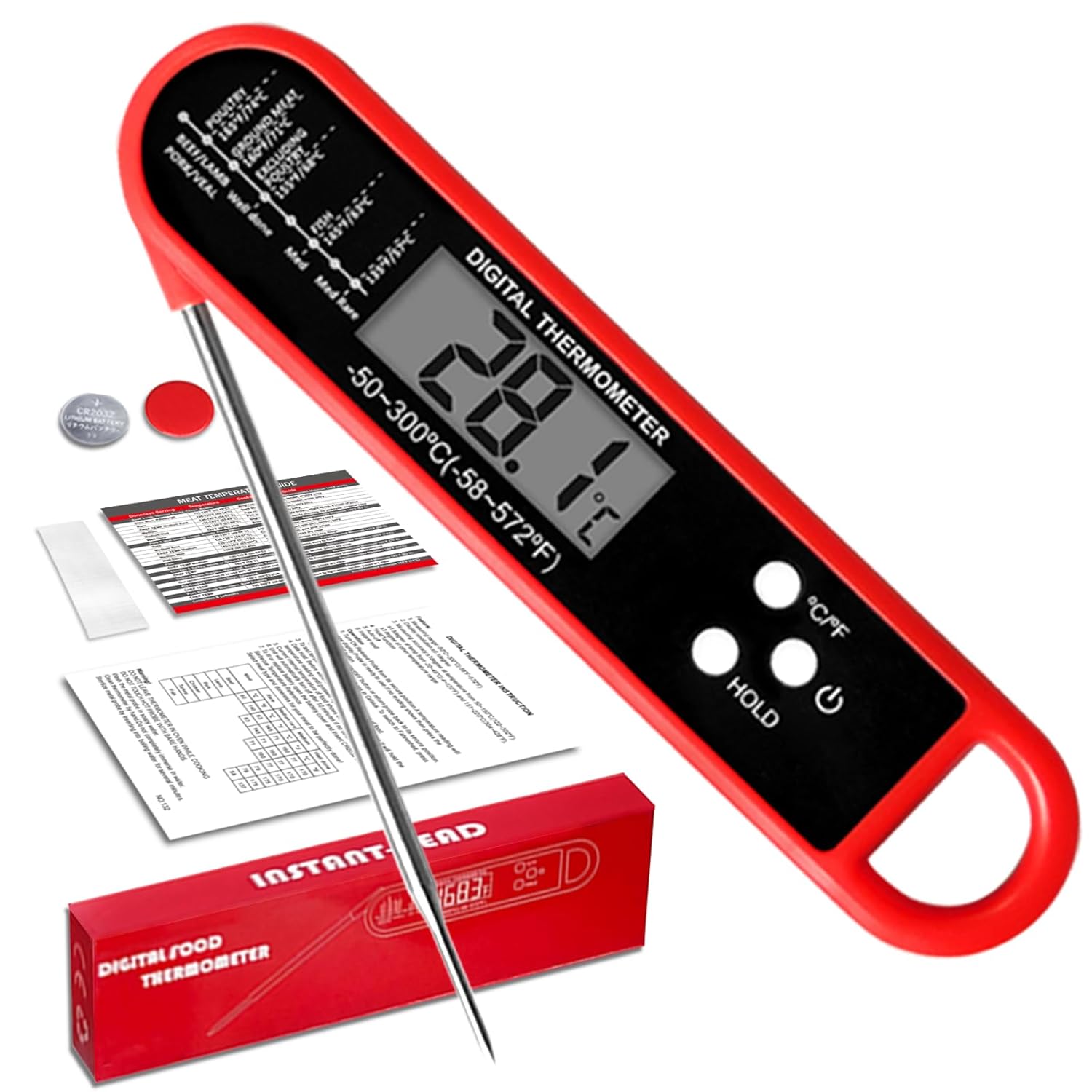 Quick and Exact Efficiency: That includes a 4-inch food-grade stainless-steel probe and a high-precision sensor, this meat thermometer supplies temperature readings inside 3-4 seconds with an accuracy of ±0.9°F. It covers a variety of -58°F to 572°F (-50°C to 300°C), preferrred for all of your cooking wants.