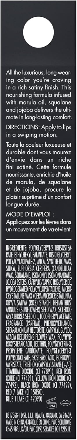 HYDRATING & LONG-LASTING FORMULA: e.l.f. Cosmetics’ O Face Satin Lipstick’s creamy, long-lasting method is infused with nourishing & hydrating squalane and jojoba esters for a super-comfortable, next-to-nothing really feel.