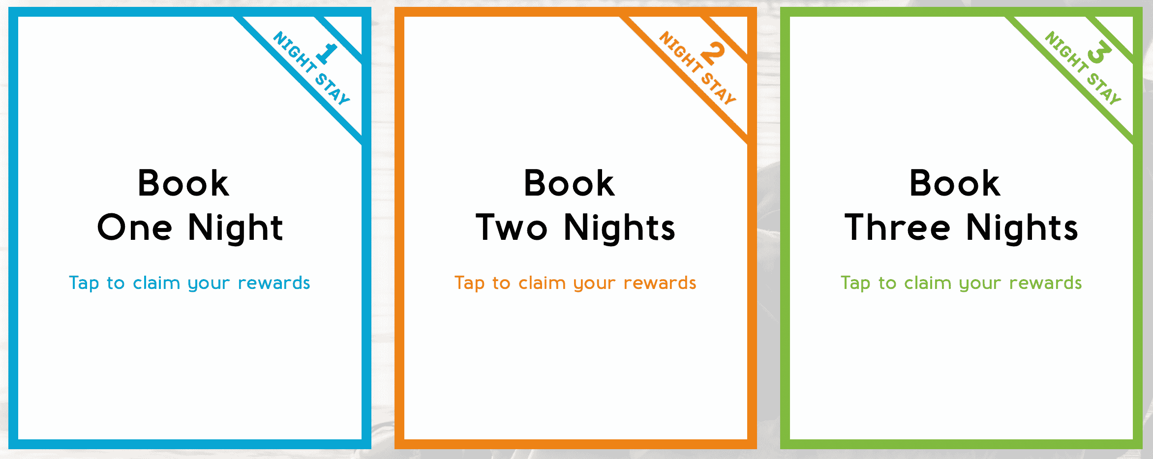 The three-night reward packages provide the best return, with as much as $225 in reward worth. Reserving a three-night keep gives the selection of the next rewards:
