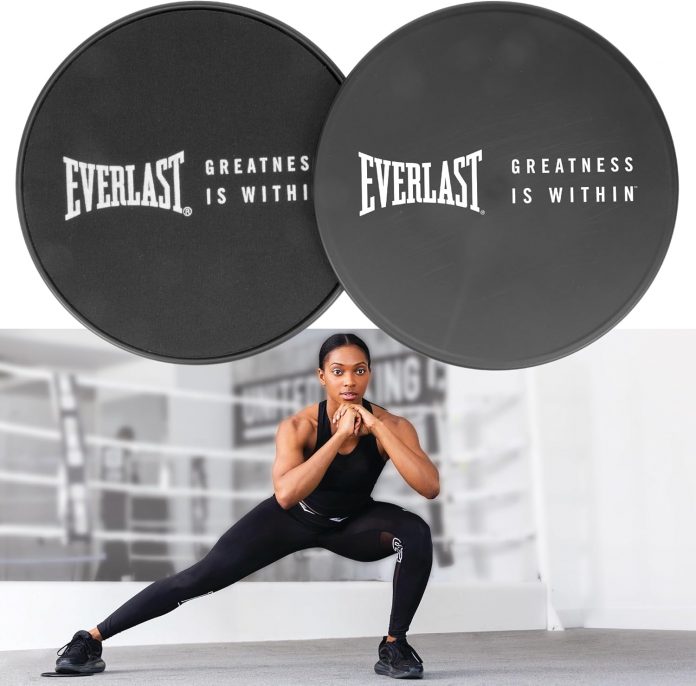 Everlast FIT Core Glide Disc Sliders – Twin-Sided Train Sliders for Carpet & Hardwood – Sculpt Core Energy with Mountain Climbers, Planks, Pikes & Lunges, Pilates, Residence Train Tools
