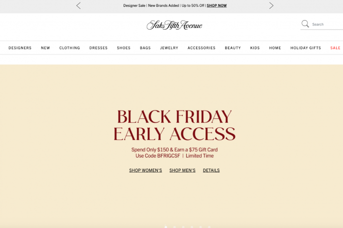 One of many best possible Black Friday offers is to spend $150 at Saks Fifth Avenue and obtain a $75 promotional present card in alternate in your well-timed buy (or much more, relying on how a lot you spend).