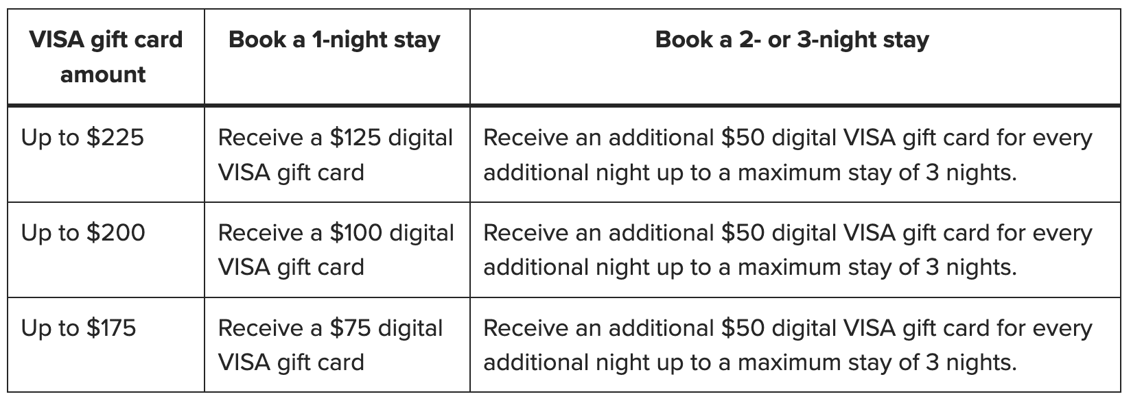 To that finish, the promotion presents a Visa digital reward card of as much as $125 in your first night time’s keep at a collaborating resort, adopted by an extra $50 Visa digital reward card per night time if you e book two nights or extra, as much as a most of three nights.