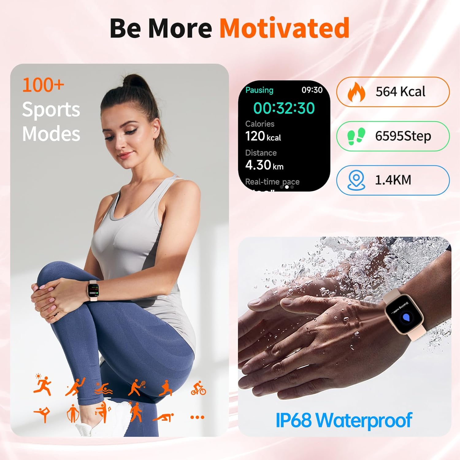 【100+ Sports activities Modes & IP68 Waterproof】 Whether or not it’s operating, yoga, biking, or swimming, select from 100+ sport modes to watch your exercises with real-time information. With an IP68 waterproof score, the watch simply withstands sweat, rain, and splashes—prepared for each health problem.