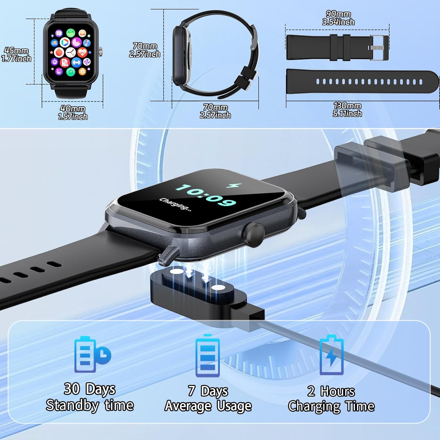Tremendous Lengthy Battery and Broad Compatibility: This smartwatch with health tracker is fastidiously constructed with a 350mAh battery that balances capability and effectivity, with simply 2.5 hours of quick charging, guaranteeing as much as 5-7 days of lively use and 30 days of standby time. This android watch is appropriate with iOS 9.0+ & Android 5.0+, guaranteeing clean day by day connectivity and comfort all through your day. Greater than only a timepiece, it’s a trendy, all-in-one wearable for smarter, more healthy residing.