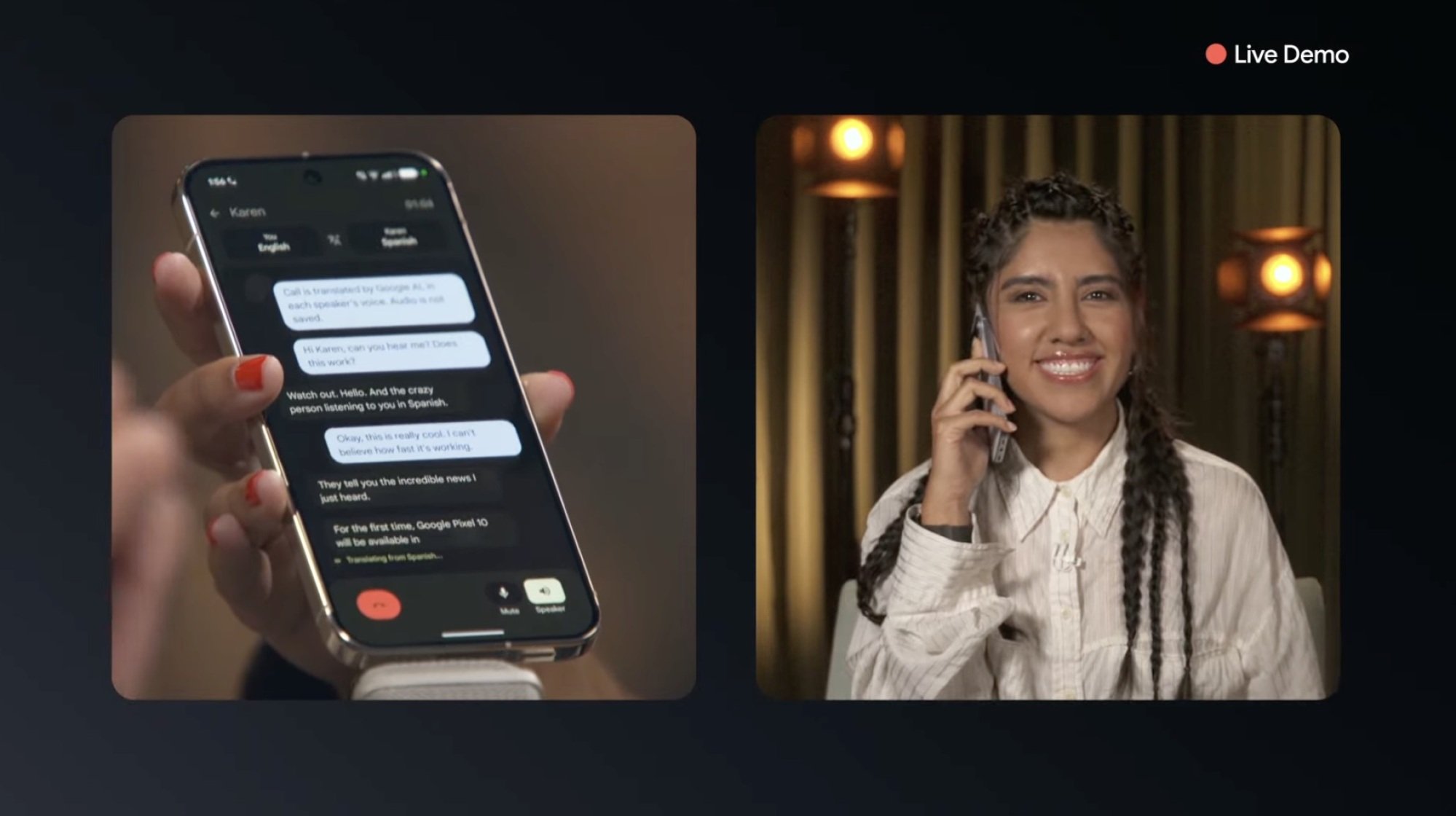 One of many extra thrilling stay demos was the Google Pixel 10’s new Voice Translate function, which interprets conversations in real-time. Fallon and Polinesia held a stay dialog the place Fallon spoke in English and Polinesia spoke in Spanish, and the Pixel 10 translated the dialog, matching their voices and tones.