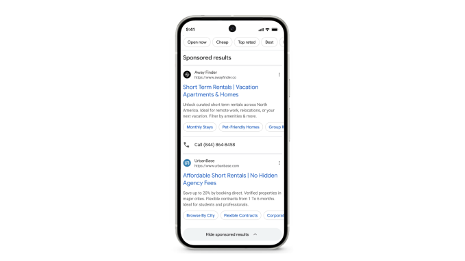 On condition that adverts are Google’s major money cow, the latter initially looks as if a extra shocking change. The characteristic will now permit customers searching Google’s Search outcomes to faucet a brand new button, “Cover sponsored outcomes,” to break down the adverts on the high of the search outcomes web page.
