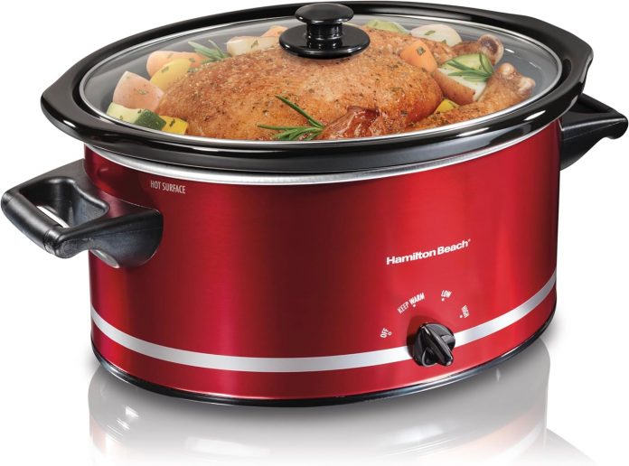 Hamilton Seashore 8 quart Pink Oval Gradual Cooker is ideal for giant meals resembling a 6 lb roast or 8 lb rooster. It options full-grip handles for straightforward carrying, detachable dishwasher protected stoneware, dishwasher protected glass lid, hold heat, high and low settings and purple metallic wrap. Preserve heat maintains the best serving temperature with out over cooking. In Field: Gradual Cooker, stoneware crock, glass lid, handbook.