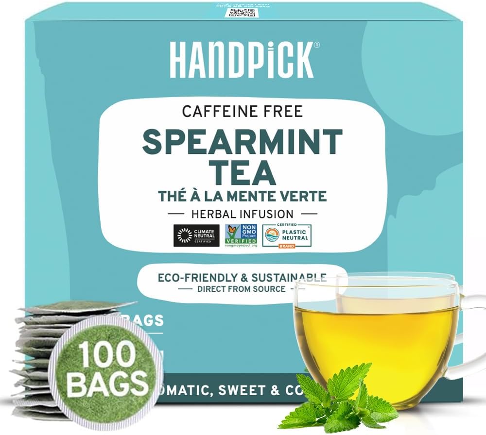 HANDPICK, Spearmint Tea Luggage (100 Natural Tea Luggage) | Refreshing Mint Tea | Non-GMO, Gluten Free | Spherical Eco-Acutely aware Tea Luggage