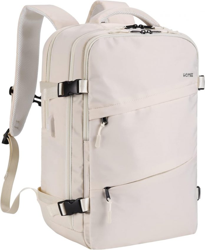 HOMIEE Journey Laptop computer Backpack, Flight Accepted Carry-On Backpack 15,6″ Laptop computer Backpack, Anti-theft Journey Backpack with USB Charging Port, Unisex Baggage Backpack, White