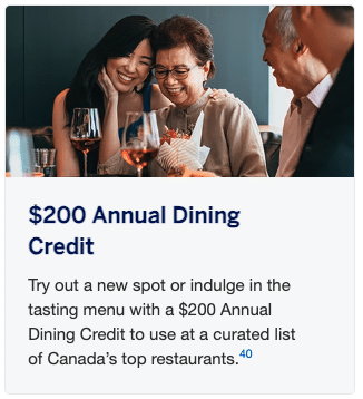 The American Specific Platinum Card’s $200 annual eating credit score offers cardholders the chance to get pleasure from an announcement credit score after spending over $200 at a taking part restaurant in Canada.
