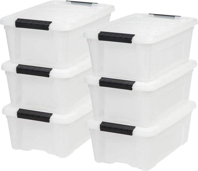 IRIS USA 12 L Plastic Storage Field with Lid and Latches – 6 Pack – BPA-Free, Discreet Organizing Resolution, Sturdy Nestable Stackable Containers, Safe Pull Deal with – Pearl
