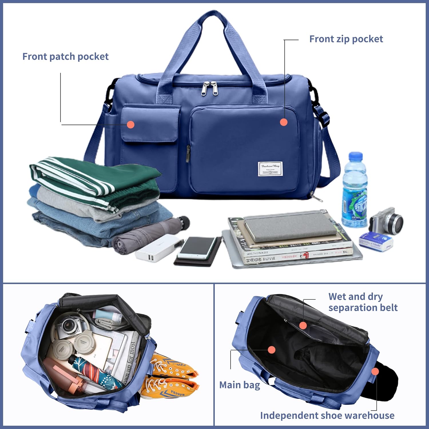 Journey Bag for Ladies Males,Waterproof Health club Bag with Shoe Compartment,Light-weight Foldable Duffel Bag,Storage Bag,Dry and Moist Organiser Bag,Giant Weekend Bag for Sport Journey (Navy)