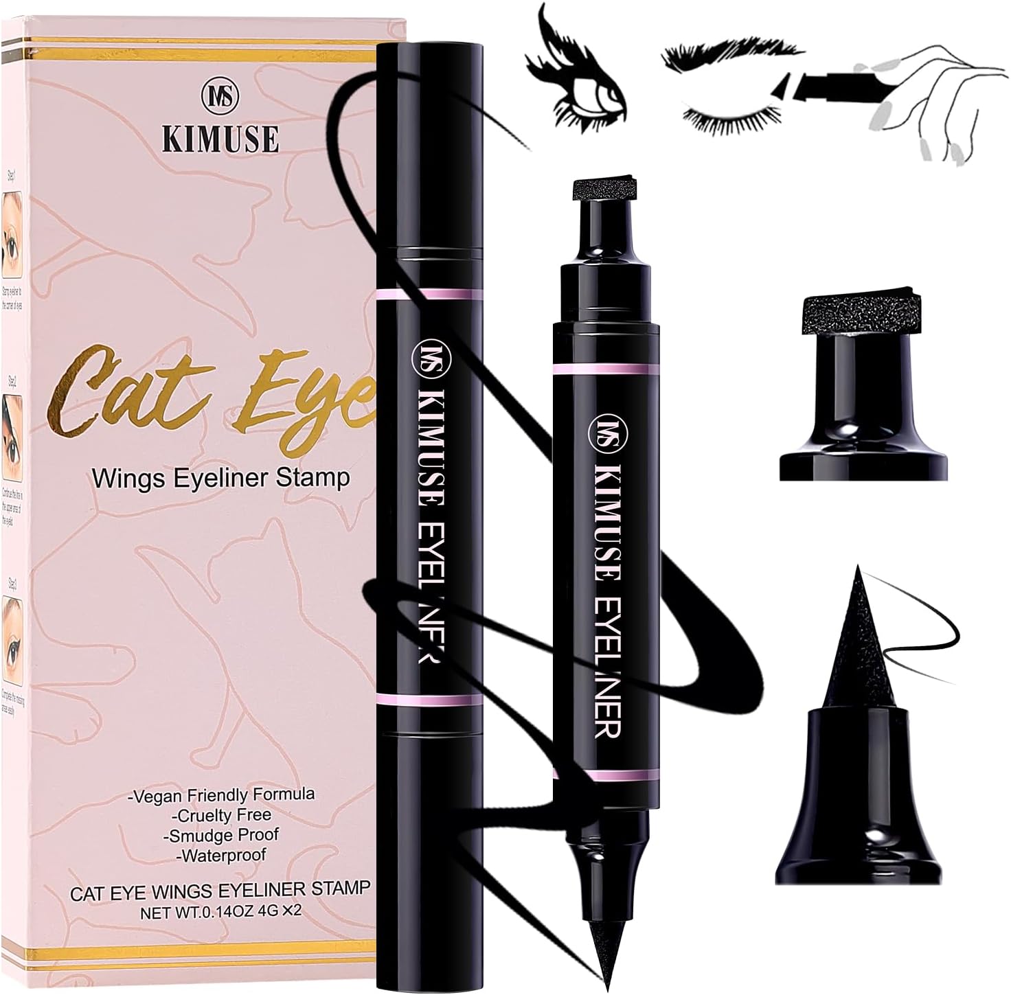 A double-ended wing stamp pen: Create good, symmetrical wings effortlessly with our eyeliner pencil stamp. Excellent for newbies—simply stamp and go