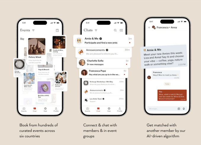 Les Amis makes use of AI to pair customers with related pursuits and encourages them to affix native occasions supplied inside the app, reminiscent of pottery lessons, ebook golf equipment, wine tastings, and Pilates.
