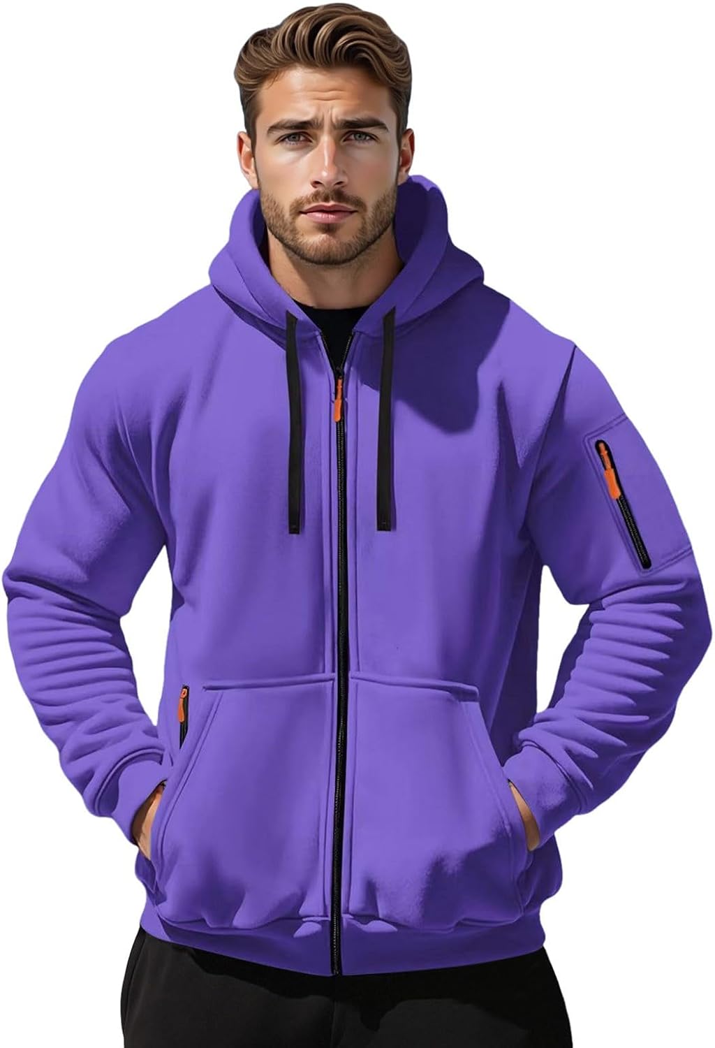 Mens Full Zip Hoodies Tactical Informal Lengthy Sleeve Hooded Sweatshirt