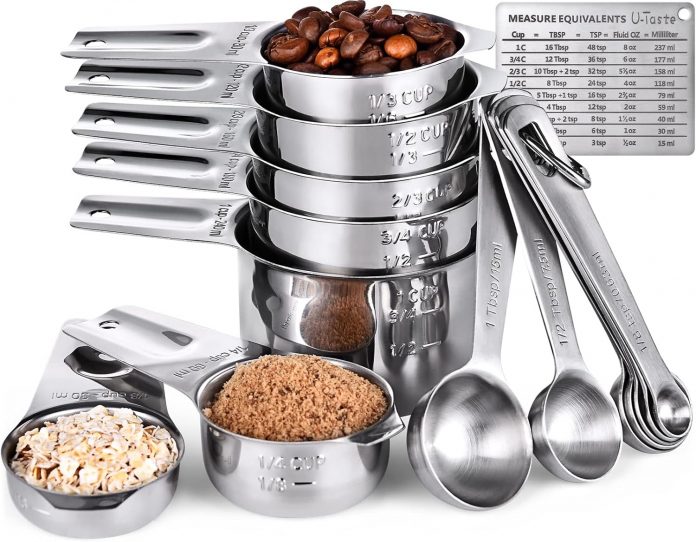 [Markings are etched to avoid washing off] If you wish to eliminate easy-fading painted measurement which makes you’re feeling embarrassed as 17.7% individuals reveals, attempt U-Style engraved set and the quantity will preserve intact. This set consists of 1/8 cup, 1/4 cup, 1/3 cup, 1/2 cup, 2/3 cup, 3/4 cup, 1 cup & 1/8 tsp, 1/4 tsp, 1/2 tsp, 3/4 tsp, 1 tsp, 1/2 tbsp, 1 tbsp and 1 skilled measurement conversion chart. A will need to have within the kitchen when your recipes deserve actual measurements!