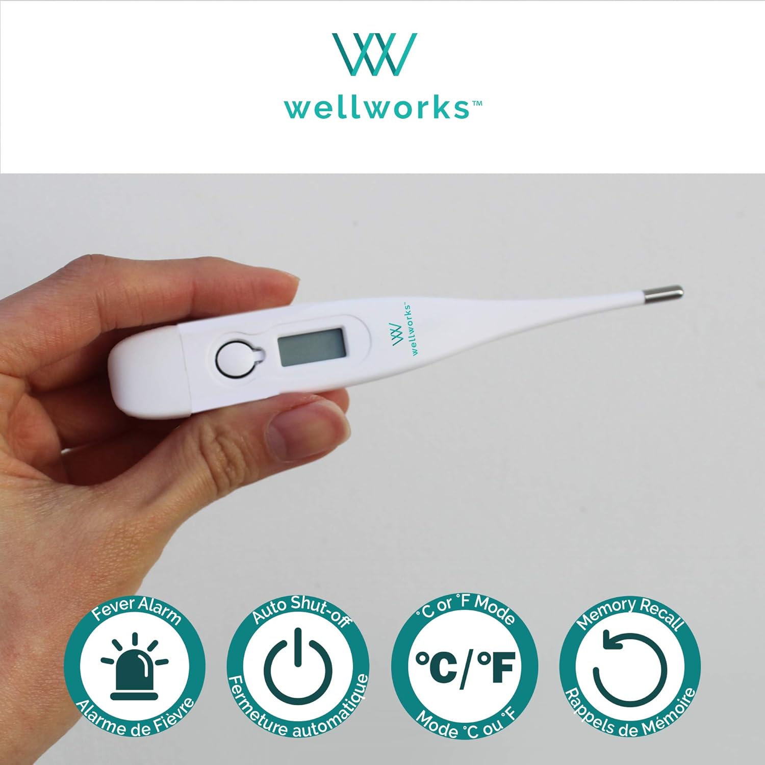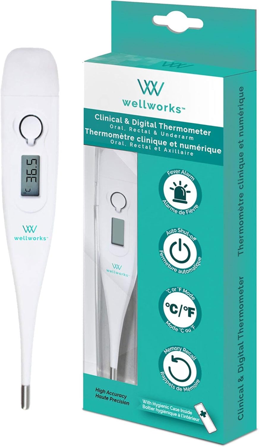 The wellworks digital & scientific thermometer is a handy and dependable family staple. It’s designed for oral, rectal or axillary (armpit) use and options fever alarm expertise, reminiscence recall, low battery indicator, And automated shut-off. It’s easy to make use of and comes with a hygienic case for safe-keeping.