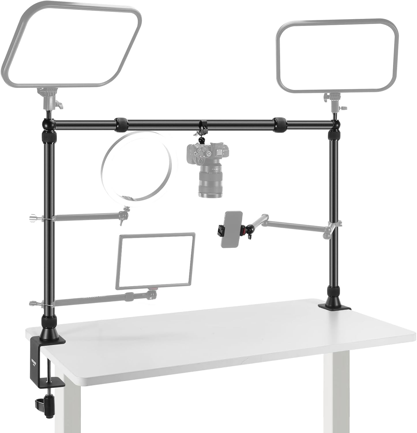 【Heavy Responsibility Professional Tabletop Mount Stand】 Strong anodized aluminum alloy design with 28mm max thickened tubes for distinctive help as much as 26.5lb/12kg (15 instances heavier than others). Area saving and environment friendly for restricted areas. The two.6″/6.5cm large C clamp with non slip rubber pads ensures safe desktop attachment. Good for tabletop dwell streaming, nonetheless life images, unboxing evaluations, on-line conferences, and extra overhead capturing eventualities