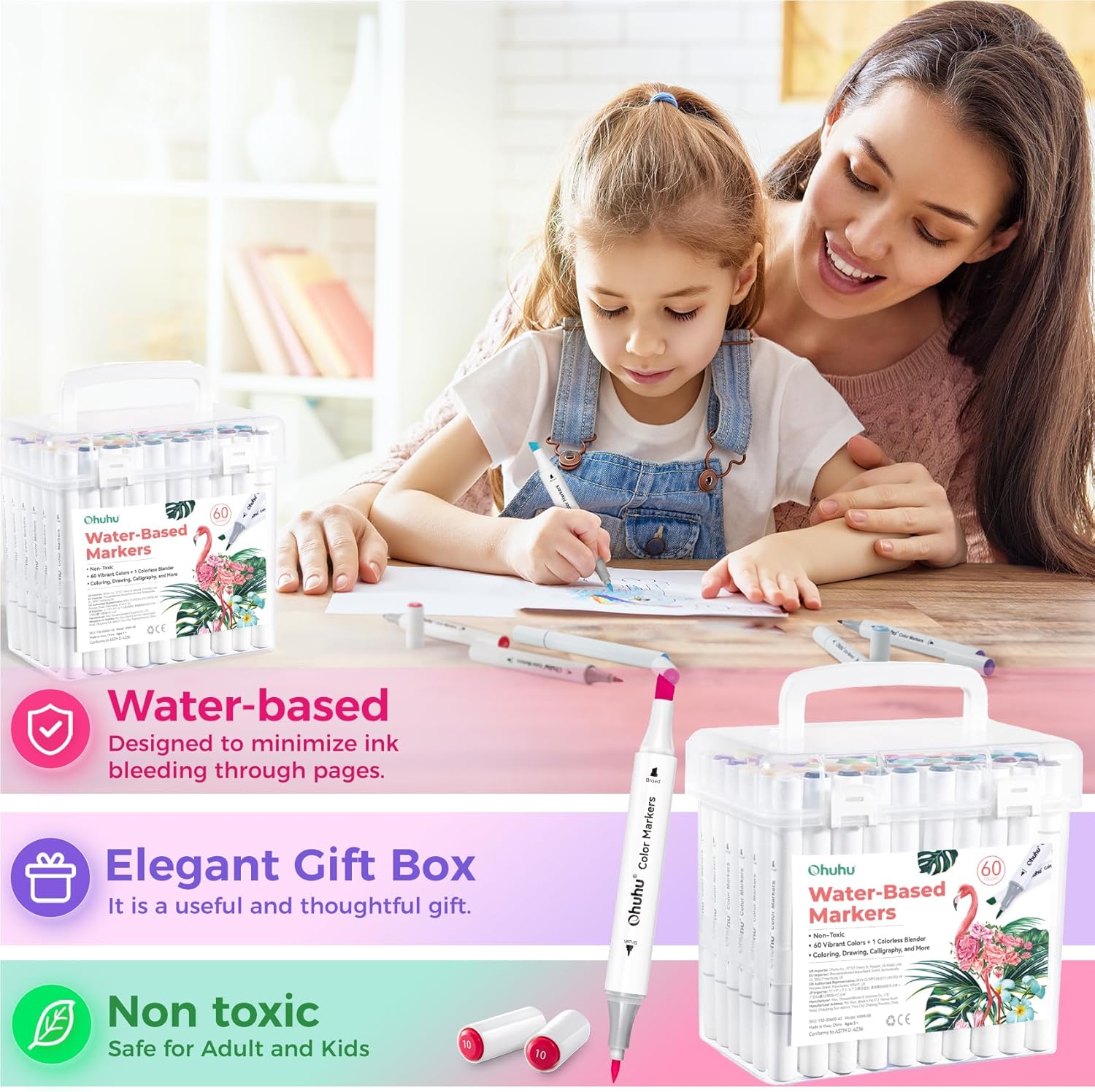 HomeCosmetics ProductsOhuhu Markers for Grownup Coloring Books No Bleeding 60 Colours Water-based Twin...