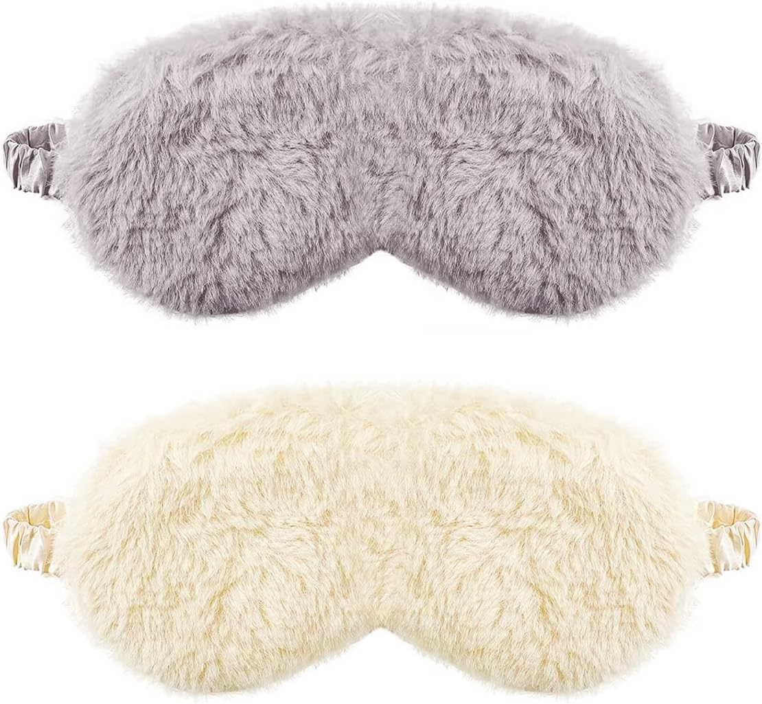 Plush Eye Masks, 2 Pcs Colourful Plush Mushy Sleeping Blindfold Eye Cowl Fluffy and Furry Eye Cowl