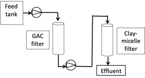 The determine above exhibits a schematic diagram of a number of the reported processes, which incorporates an enzymatic system for the removing of contaminants within the type of tangential filtration and one other one within the type of fastened mattress filtration utilizing several types of filters (biofilm formation adopted by one other filter for the removing of contaminants, metabolites and micro organism launched from the biofilm). The decrease half represents a suggestion so as to add to the GAC filter in collection a micelle- clay filter which is highly effective in eradicating from water micro organism and different microorgsanisms, as a treatment in opposition to occasional escape of  pollution from the GAC filter.