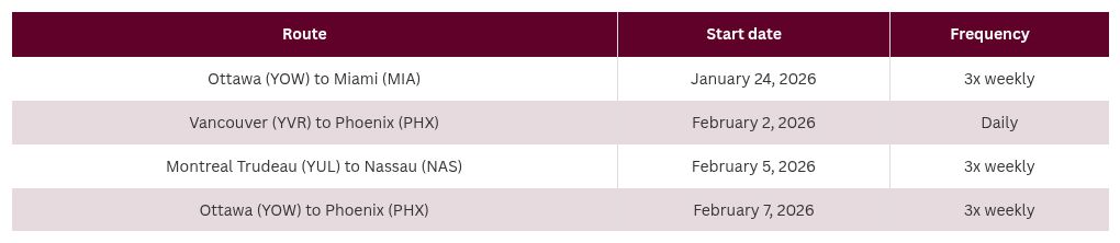 This ramp-up is a direct response to sturdy demand from Canadian travellers in search of warm-weather getaways throughout peak winter months.