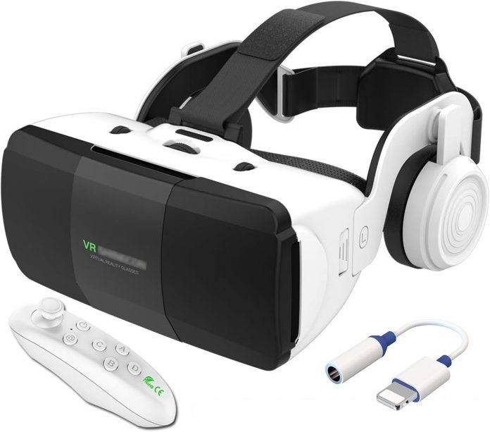 PUCIO Digital Actuality Headset with Controller and Headphones, 3D VR Glasses for Video Films & Video games, Suitable iOS and Android Smartphones 4.7-7.8in,VR Headset Set for Youngsters