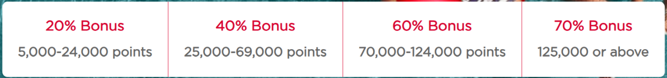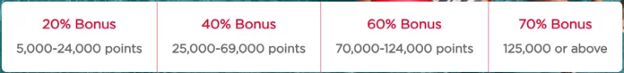 You’ll obtain a better bonus as you buy extra Virgin Factors, which is structured as follows:
